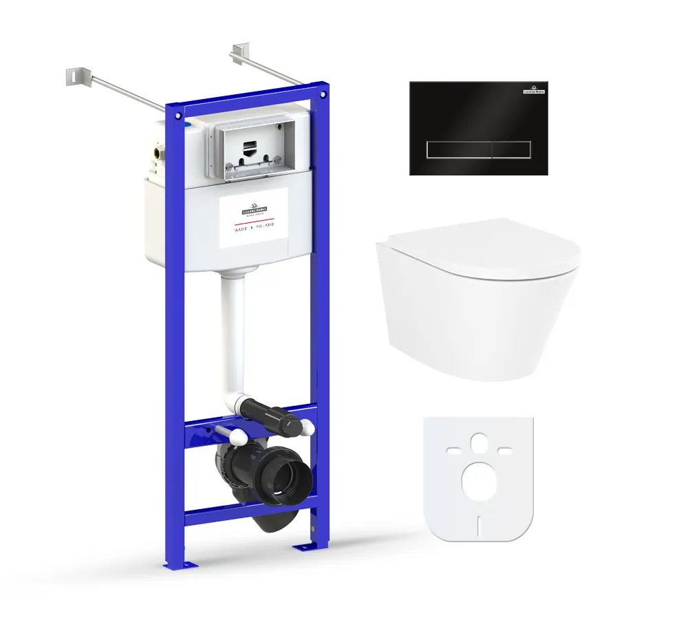 - 77050172 - Комплект инсталляции и унитаза 6 в 1 Lavinia Boho Relfix Biore Compacto Rimless (система инсталляции Relfix 38010020; удлиненный комплект креплений к стене (включено в артикул 38010020); звукоизолирующая пластина для унитаза (включена в артикул 38010020); клавиша смыва Relfix 380501MB; подвесной унитаз Biore Compacto Rimless 330402CR; быстросъемное дюропластовое сиденье с медленно опускающейся крышкой и хромированными металлическими петлями (включено в артикул 330402CR)